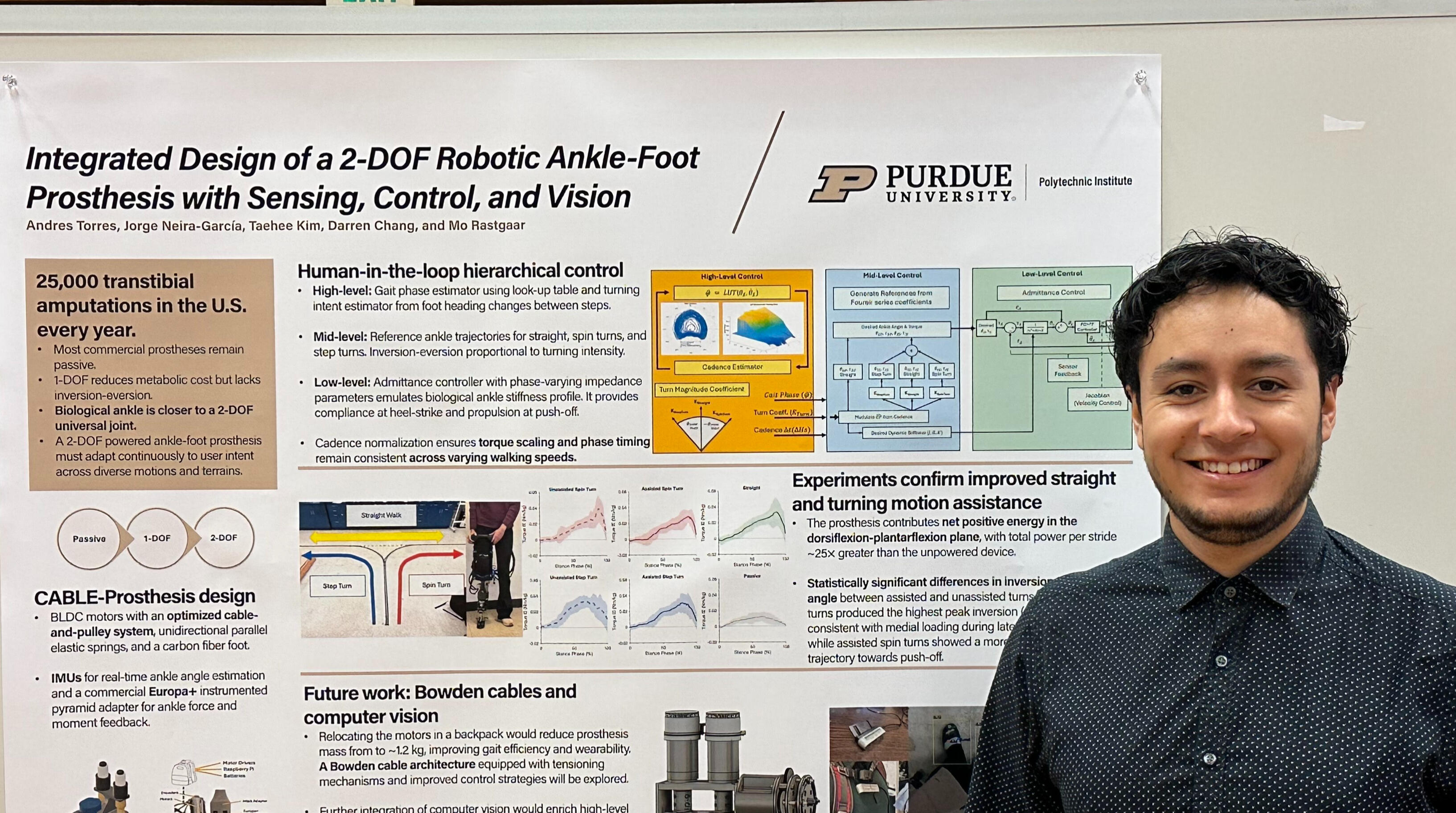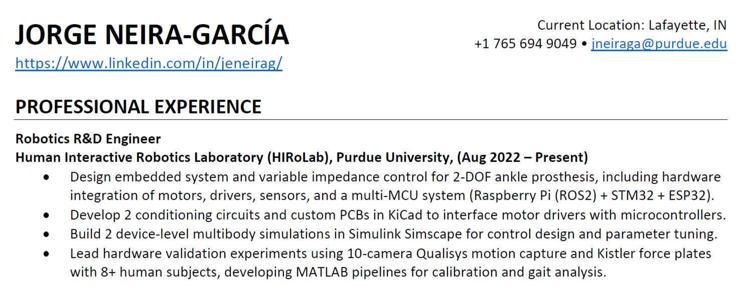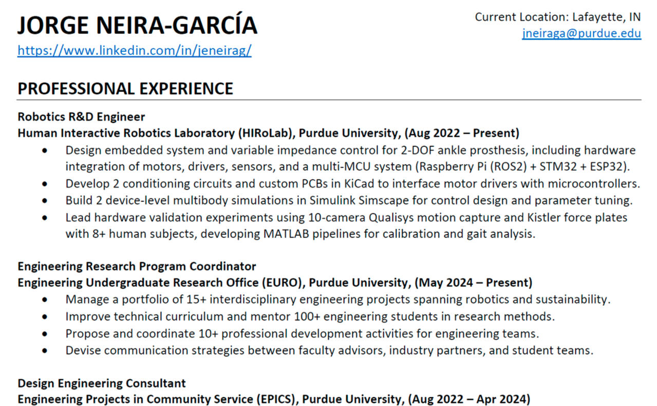 A first-generation Colombian engineer and PhD candidate in Robotics at Purdue, building smarter control systems for ankle-foot prostheses. I love the full stack of engineering when it drives real social impact, from control theory on paper to embedded code on hardware. Outside the lab, you'll find me mentoring students, assembling Lego sets, or finding my way to all seven wonders of the world.